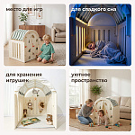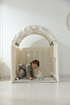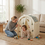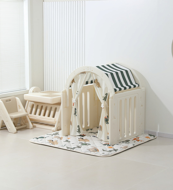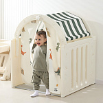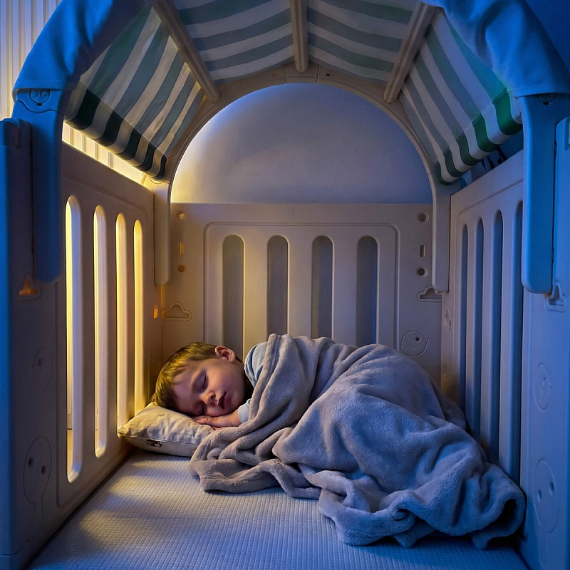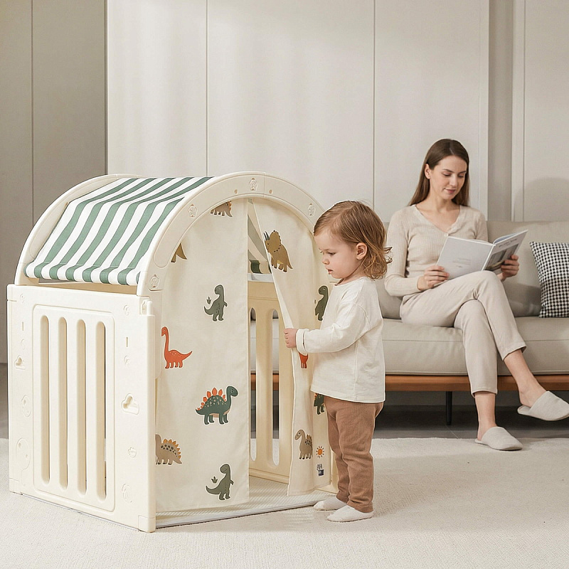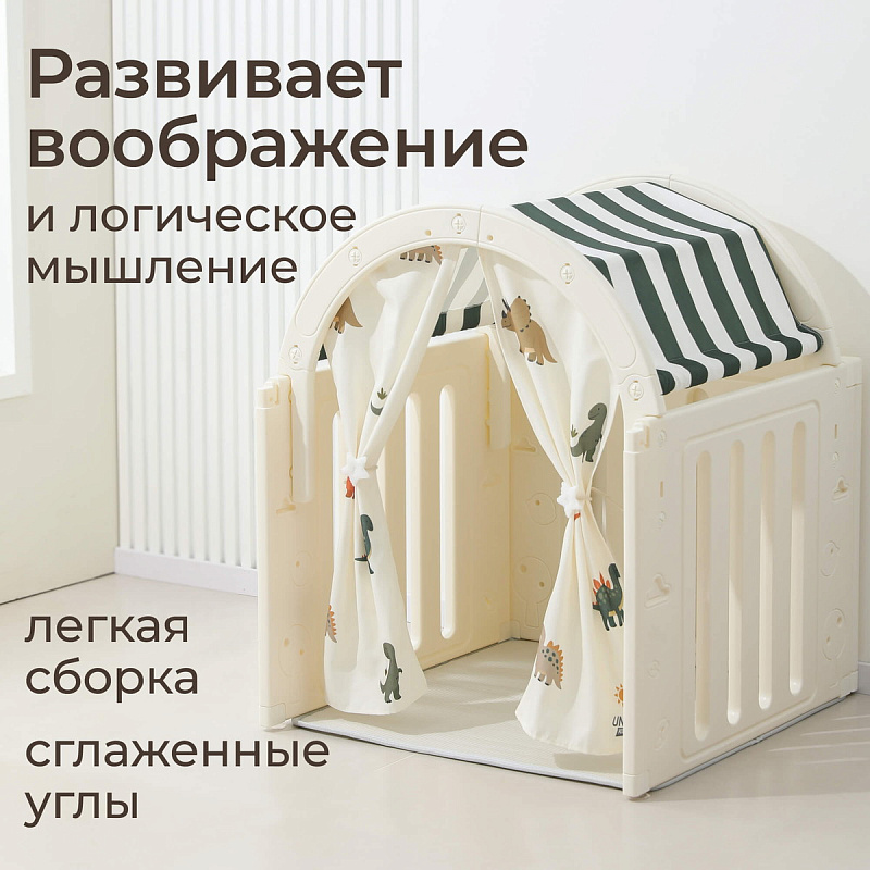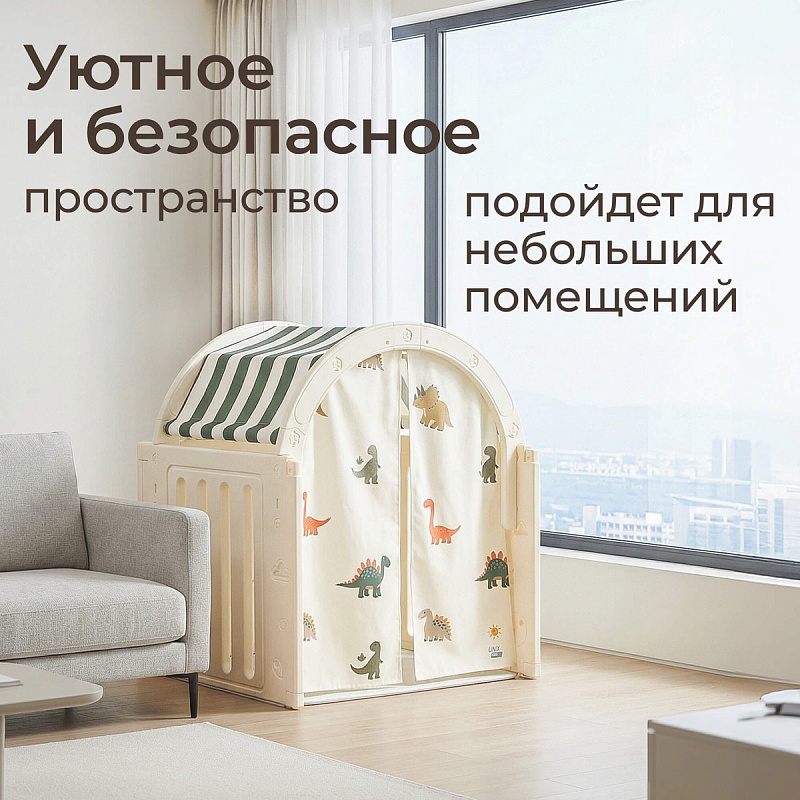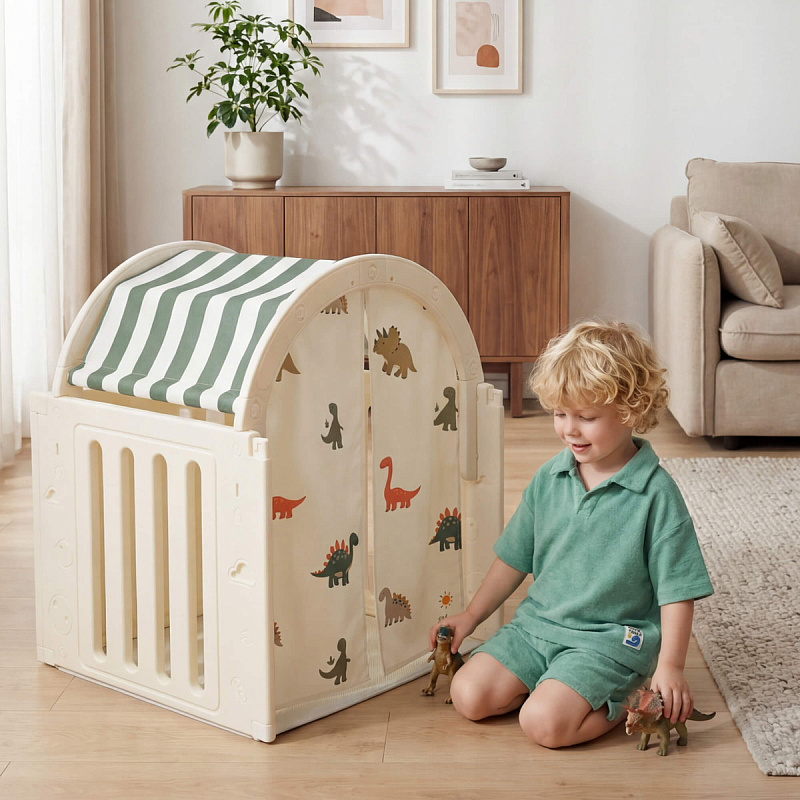 Легкость сборки позволяет быстро подготовить детскую игровую, экономя ваше время. Материал крыши и штор допускает стирку в стиральной машине, а небольшие загрязнения легко удаляются обычной влажной губкой, сохраняя чистоту и гигиеничность пространства.