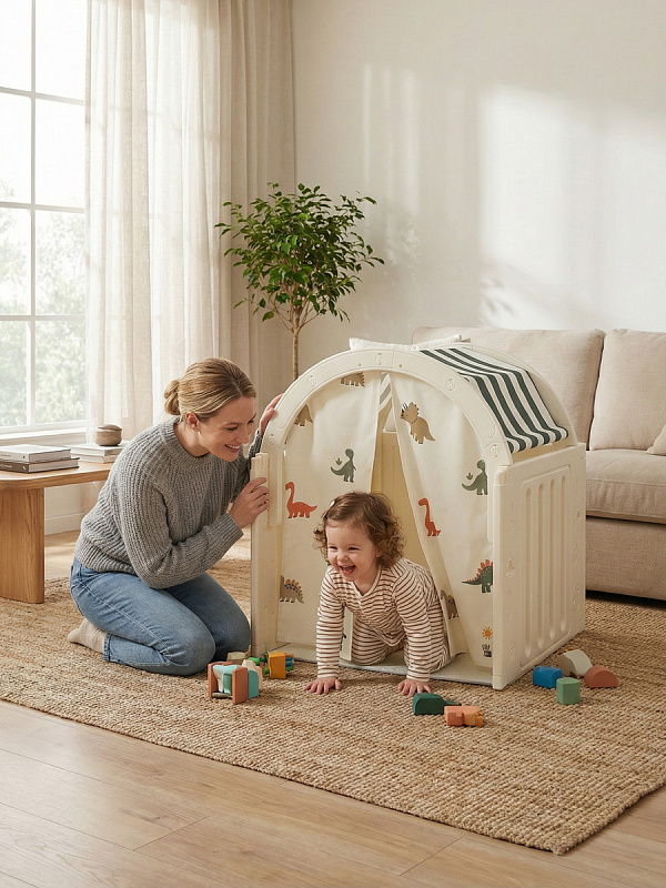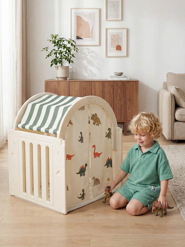 Легкость сборки позволяет быстро подготовить детскую игровую, экономя ваше время. Материал крыши и штор допускает стирку в стиральной машине, а небольшие загрязнения легко удаляются обычной влажной губкой, сохраняя чистоту и гигиеничность пространства.
