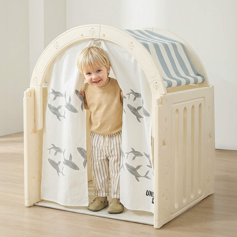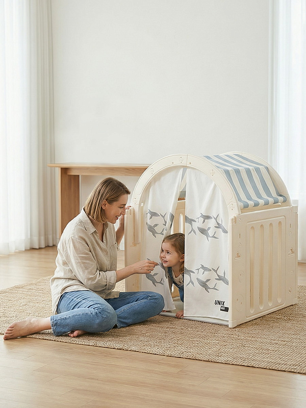 Легкость сборки позволяет быстро подготовить детскую игровую, экономя ваше время. Материал крыши и штор допускает стирку в стиральной машине, а небольшие загрязнения легко удаляются обычной влажной губкой, сохраняя чистоту и гигиеничность пространства.