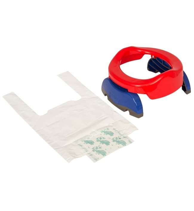 Дорожный горшок Potette plus складной, 1 одноразовый пакет красный/голубой