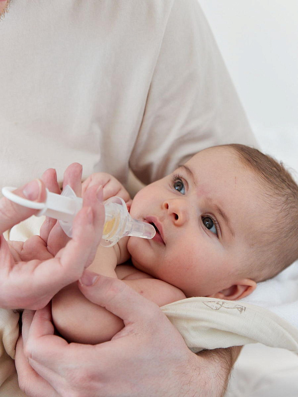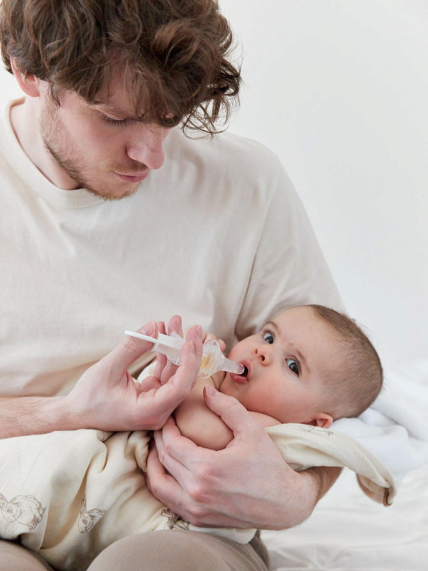 Дозатор поможет быстро и легко отмерить необходимую для малыша порцию. Содержимое дозатора можно аккуратно ввести, пока кроха будет увлеченно жевать силиконовый наконечник. Косые отверстия направляют жидкость в разные стороны, избегая прямого попадания в горло, чтобы малыш случайно не подавился. Мерный стаканчик объемом 20 мл поможет отмерить большее количество жидкости, которое необходимо разделить на несколько порций. Дозатор имеет широкий ограничитель.