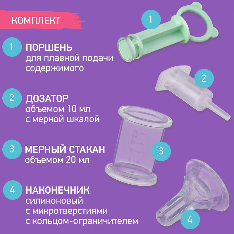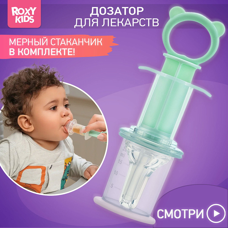 Дозатор для приема лекарств ROXY-KIDS поможет обеспечить комфортное введение малышу любых сиропов, лекарств и других жидкостей, если он отказывается их принимать. С помощью дозатора можно легко отмерить нужную порцию и контролировать скорость введения лекарства. Содержимое можно аккуратно ввести, пока ребенок будет увлеченно жевать силиконовый наконечник.