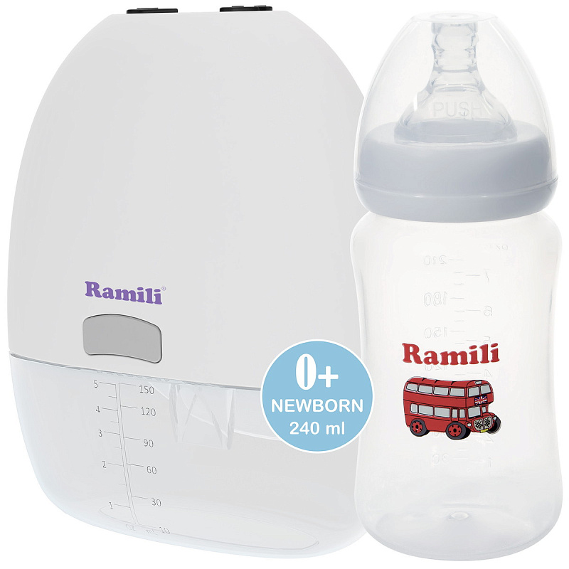 В комплекте молокоотсос Ramili SE150 и противоколиковая бутылочка Ramili Baby 240ML. Молокоотсосы Ramili® созданы в тесном сотрудничестве со специалистами по грудному вскармливанию и кормящими мамами, вобрали в себя все достижения в этой области, чтобы родители с комфортом для себя могли обеспечить малыша самым полноценным питанием в любом месте и в любое время. Молокоотсос позволяет сохранить материнское молоко даже в том случае, когда кормление грудью временно невозможно.
