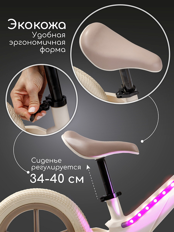Беговел AmaroBaby Motion – стильный, крутой и невероятно функциональный спутник вашего малыша на пути к большим велосипедным свершениям! Уникальная динамичная подсветка рамы с множеством вариантов превратит каждую прогулку в захватывающее световое шоу.