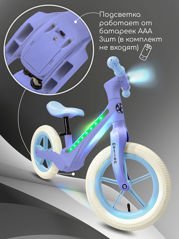 Беговел AmaroBaby Motion – стильный, крутой и невероятно функциональный спутник вашего малыша на пути к большим велосипедным свершениям! Уникальная динамичная подсветка рамы с множеством вариантов превратит каждую прогулку в захватывающее световое шоу.
