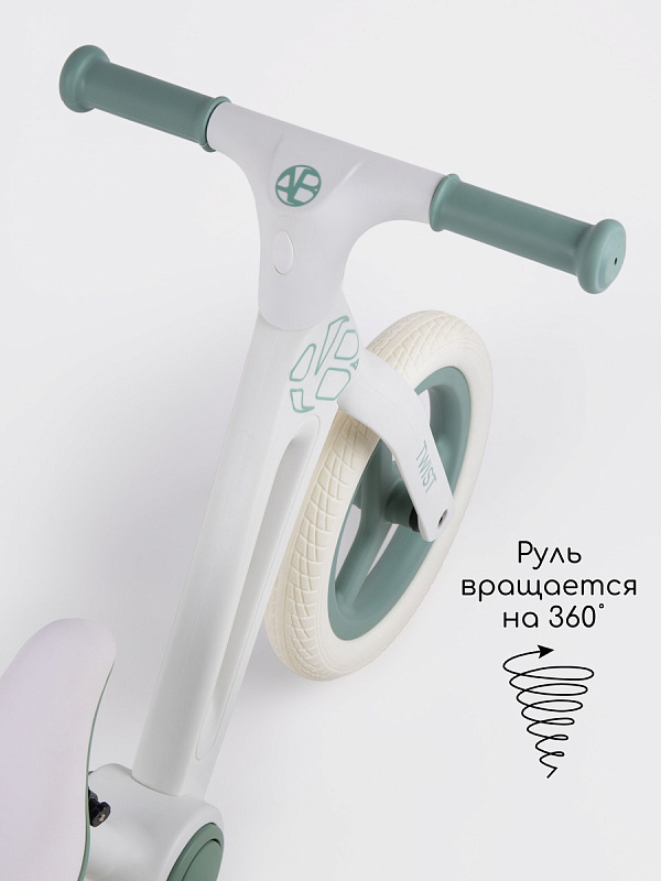 Руль вращается на 360 градусов, что позволяет ребенку легко маневрировать и управлять им во время езды. Мягкие противоскользящие ручки предотвращают соскальзывание и падения, обеспечивая безопасность ребенка. По обеим сторонам беговела также присутствуют специальные подножки, куда ребенок может поставить ноги и отдохнуть во время езды.