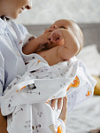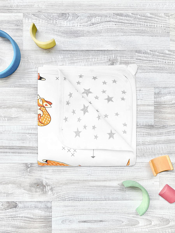 Двусторонний плед Mjölk [мьёльк] Лисички выполнен из двух слоёв трикотажного 100% хлопка без наполнителя. На одной стороне пледа расположился нарядный рисунок из оранжевых лисичек, а на второй – россыпь серебристо-серых звёздочек разного размера на белом фоне. Материал нежный и мягкий, «дышит», не вызывает аллергии и дарит ребёнку уют. Плед можно использовать для сна в кроватке, коляске и автокресле, как накидку для кормления. Яркий принт делает его отличным фоном для фотосессий в домашних условиях или на улице. Изделие может быть выполнено из ткани разных тонов белого и кремового цвета.