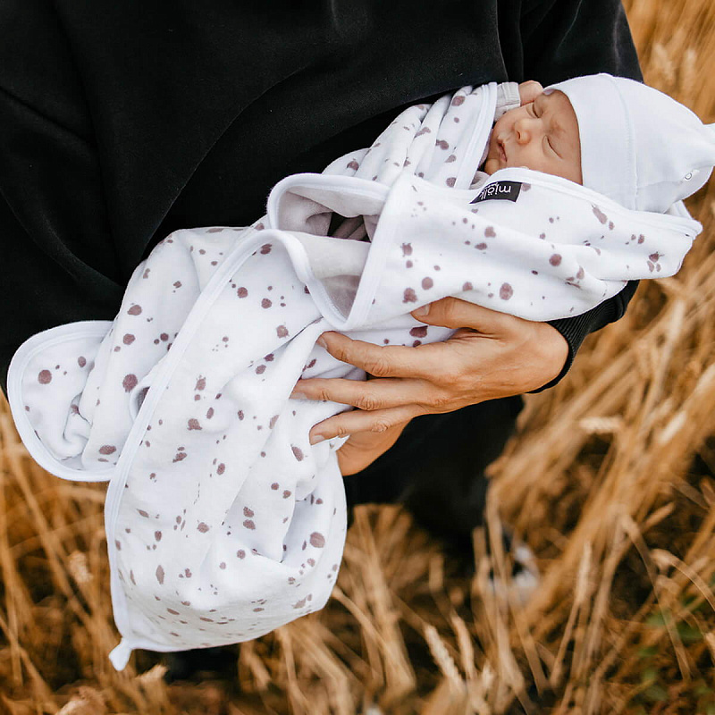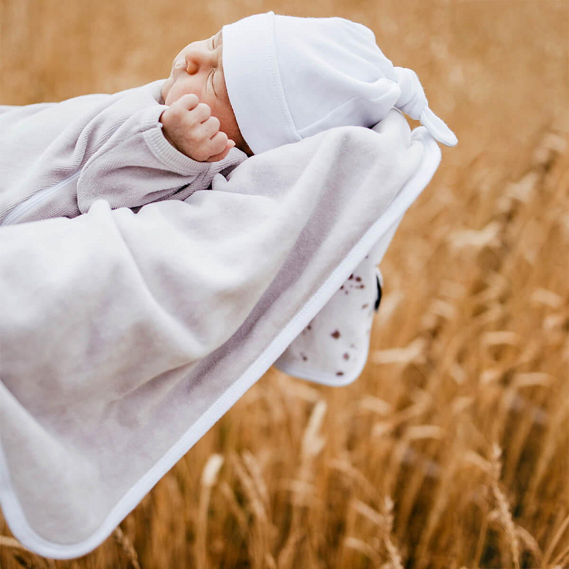 Плед создан без наполнителя, подойдёт для использования круглый год при комнатной температуре и для прогулок на свежем воздухе. Подходит для сна в кроватке, коляске, автокресле, станет нарядным фоном для фотосессий в домашних условиях и на улице. Хорошо сочетается с велюровыми комбинезонами и чепчиками.