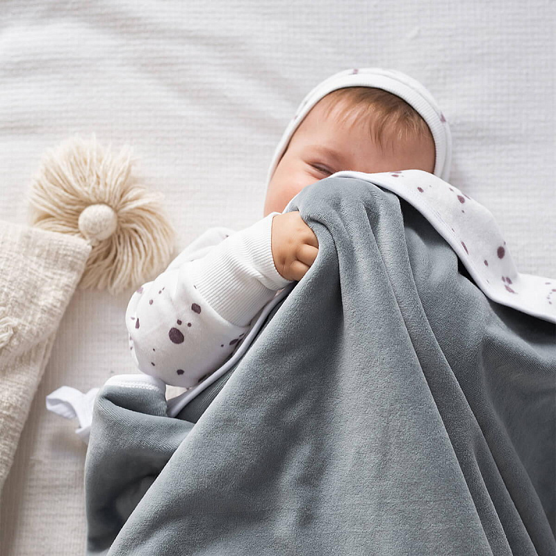 Двусторонний тёплый плед Mjölk [мьёльк] Baby Blue выполнен из мягкого плюшевого велюра. Плед создан без наполнителя, подойдёт для использования круглый год при комнатной температуре и для прогулок на свежем воздухе. Подходит для сна в кроватке, коляске, автокресле, станет нарядным фоном для фотосессий в домашних условиях и на улице. Хорошо сочетается с велюровыми комбинезонами и чепчиками.