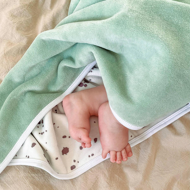 Двусторонний тёплый плед Mjölk [мьёльк] Magic Mint выполнен из мягкого плюшевого велюра. Плед создан без наполнителя, подойдёт для использования круглый год при комнатной температуре и для прогулок на свежем воздухе. Подходит для сна в кроватке, коляске, автокресле, станет нарядным фоном для фотосессий в домашних условиях и на улице. Хорошо сочетается с велюровыми комбинезонами и чепчиками.