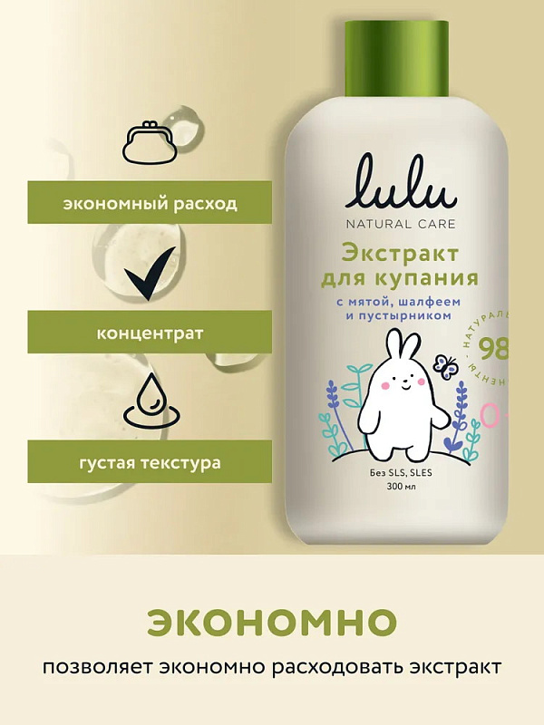 Экстракт LULU для купания малышей с маслами мяты, шалфея и экстрактом пустырника, 300 млНет оценокХарактеристики