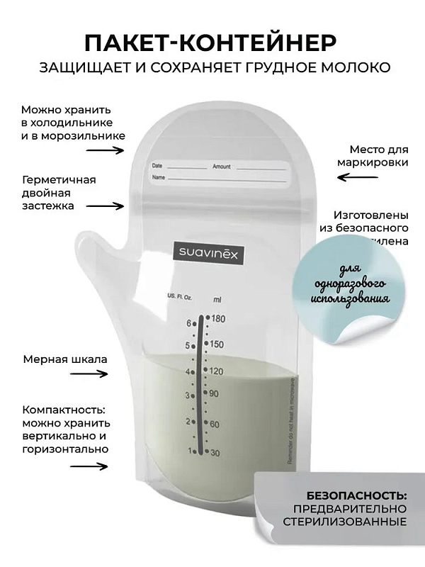 - Пакеты для сбора и хранения грудного молока (180 мл х 3 шт)