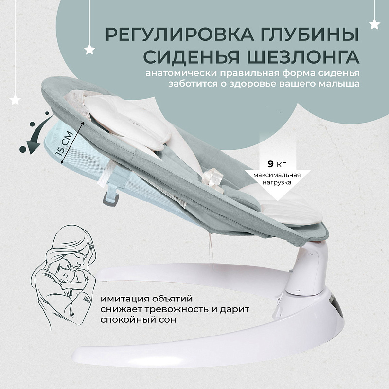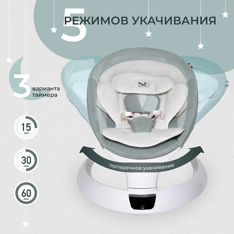 - 3 режима таймера укачивания на 15, 30, 60 минут помогут запланировать режим работы электрокачель.