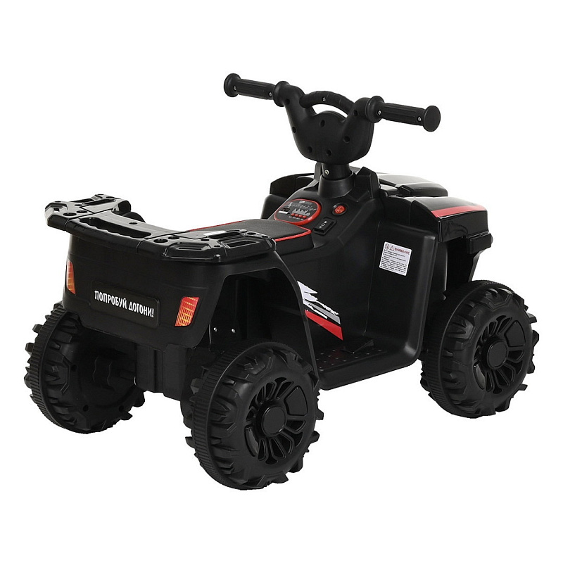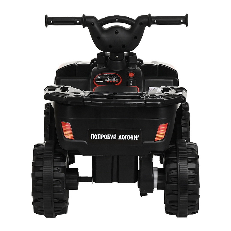 В ней есть всё, что понравиться вашим детям. Квадроцикл легко, при помощи кнопки переключает режим поездки вперед и назад. Движение начинается, когда ребёнок надавит педаль ногой, если убрать ножку с педали, электромобиль тут же остановиться. Фары будут освещать дорогу. Чтобы не было скучно можно включить мелодии на выбор. Неровности дороги сгладят амортизаторы. Вы можете идти спокойным шагом рядом с ребёнком, скорость квадроцикла 3км/час. Электромашина детская рассчитана для детей от 3 лет, с максимальным весом до 25 кг.
