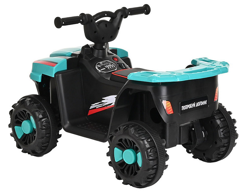 В ней есть всё, что понравиться вашим детям. Квадроцикл легко, при помощи кнопки переключает режим поездки вперед и назад. Движение начинается, когда ребёнок надавит педаль ногой, если убрать ножку с педали, электромобиль тут же остановиться. Фары будут освещать дорогу. Чтобы не было скучно можно включить мелодии на выбор. Неровности дороги сгладят амортизаторы. Вы можете идти спокойным шагом рядом с ребёнком, скорость квадроцикла 3км/час. Электромашина детская рассчитана для детей от 3 лет, с максимальным весом до 25 кг.