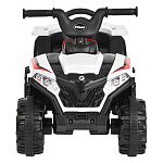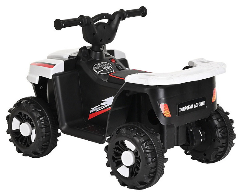 В ней есть всё, что понравиться вашим детям. Квадроцикл легко, при помощи кнопки переключает режим поездки вперед и назад. Движение начинается, когда ребёнок надавит педаль ногой, если убрать ножку с педали, электромобиль тут же остановиться. Фары будут освещать дорогу. Чтобы не было скучно можно включить мелодии на выбор. Неровности дороги сгладят амортизаторы. Вы можете идти спокойным шагом рядом с ребёнком, скорость квадроцикла 3км/час. Электромашина детская рассчитана для детей от 3 лет, с максимальным весом до 25 кг.