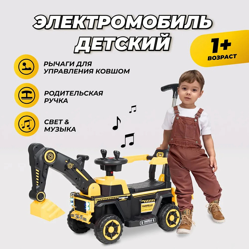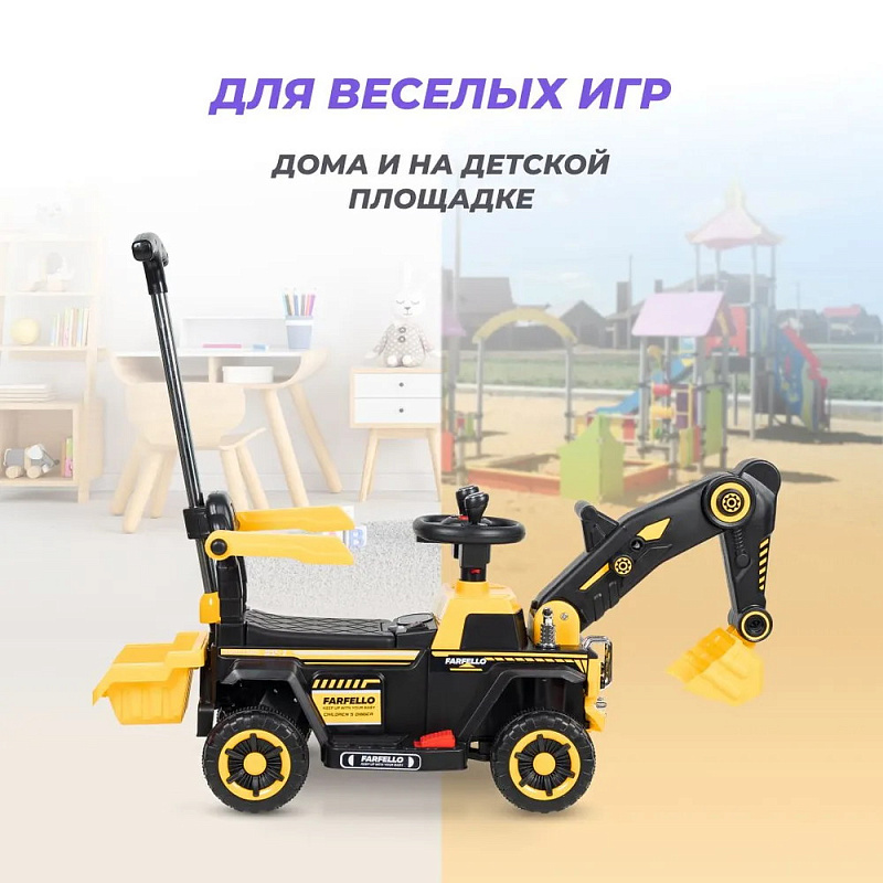 Детский электромобиль-экскаватор Farfello SR1188 - это отличный подарок для вашего ребенка, который не только развлечет его, но и способствует его развитию и активному времяпрепровождению.