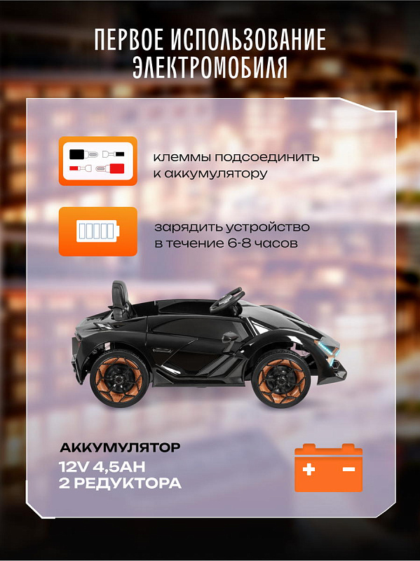 Роскошный спортивный электромобиль для маленьких гонщиков! Изысканный дизайн в стиле легендарного Lamborghini воплотит мечты вашего ребенка о вождении суперкара. Стильный электромобиль сочетает в себе привлекательный внешний вид, безопасность и современные технологии.