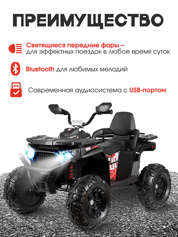 Стильный электромобиль квадроцикл Farfello TR124 создан для маленьких водителей, которые мечтают почувствовать себя настоящими автолюбителями. Прочная конструкция и продуманная система управления обеспечат безопасное и увлекательное катание.