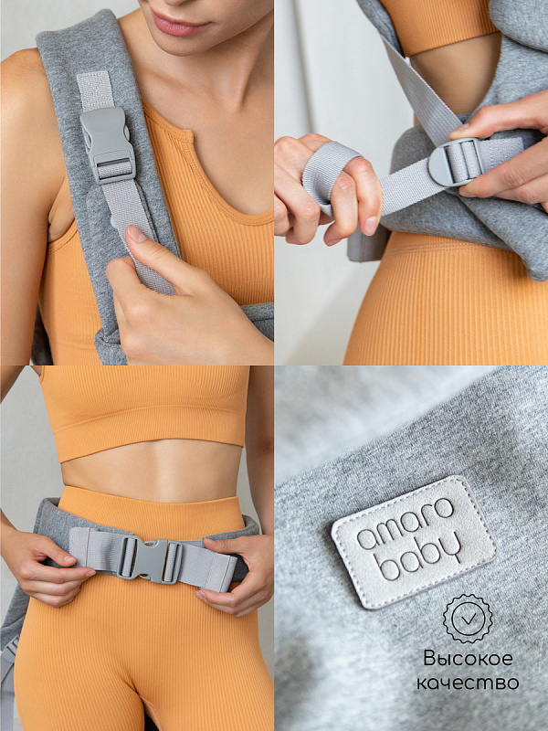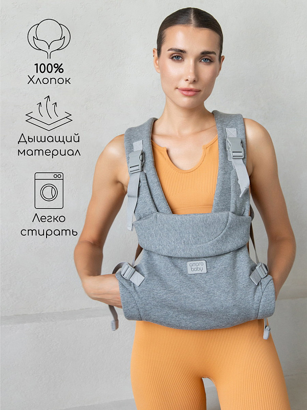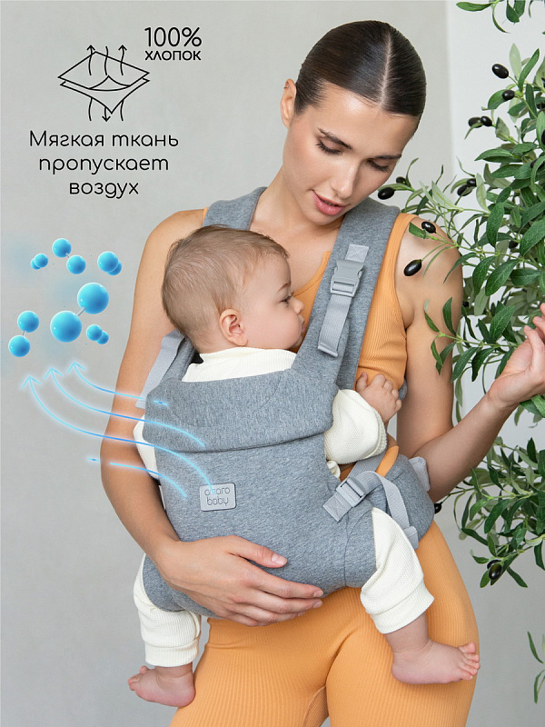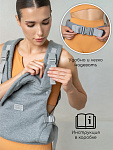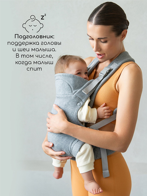 Ребенок находится в анатомически правильном положении-лицом к маме. Ножки малыша не провисают, широко разведены в стороны и согнуты в коленях-М позиция. Спинка ребенка напоминает букву С-естественный изгиб предотвращает давление на позвоночник . Для поддержки головы и шеи предусмотрен подголовник.