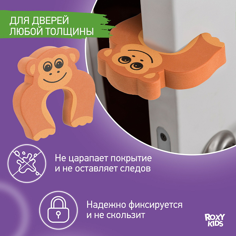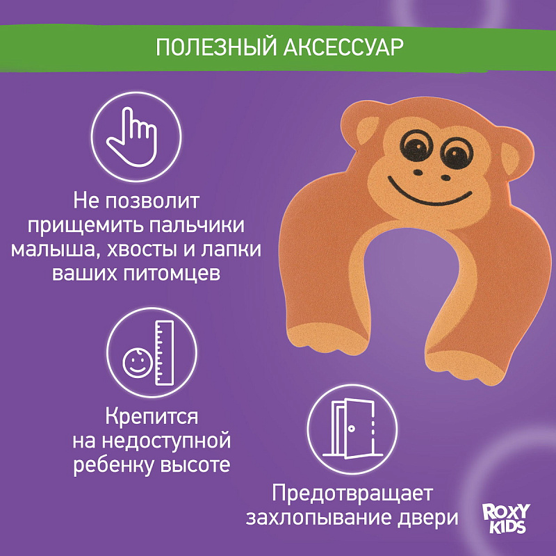 Защитный ограничитель для окон и дверей ROXY-KIDS не позволит створкам захлопнуться и прищемить пальчики малыша, сделает безопасным процесс открывания и закрывания. Легко устанавливается на любые типы межкомнатных дверей без дополнительных крепежей, не царапает покрытие, не оставляет следов при снимании. Крепится на боковую поверхность двери, на высоте, недоступной ребенку. Помимо основной функции, удобно использовать в доме с питомцами, для которых двери должны быть всегда открыты.