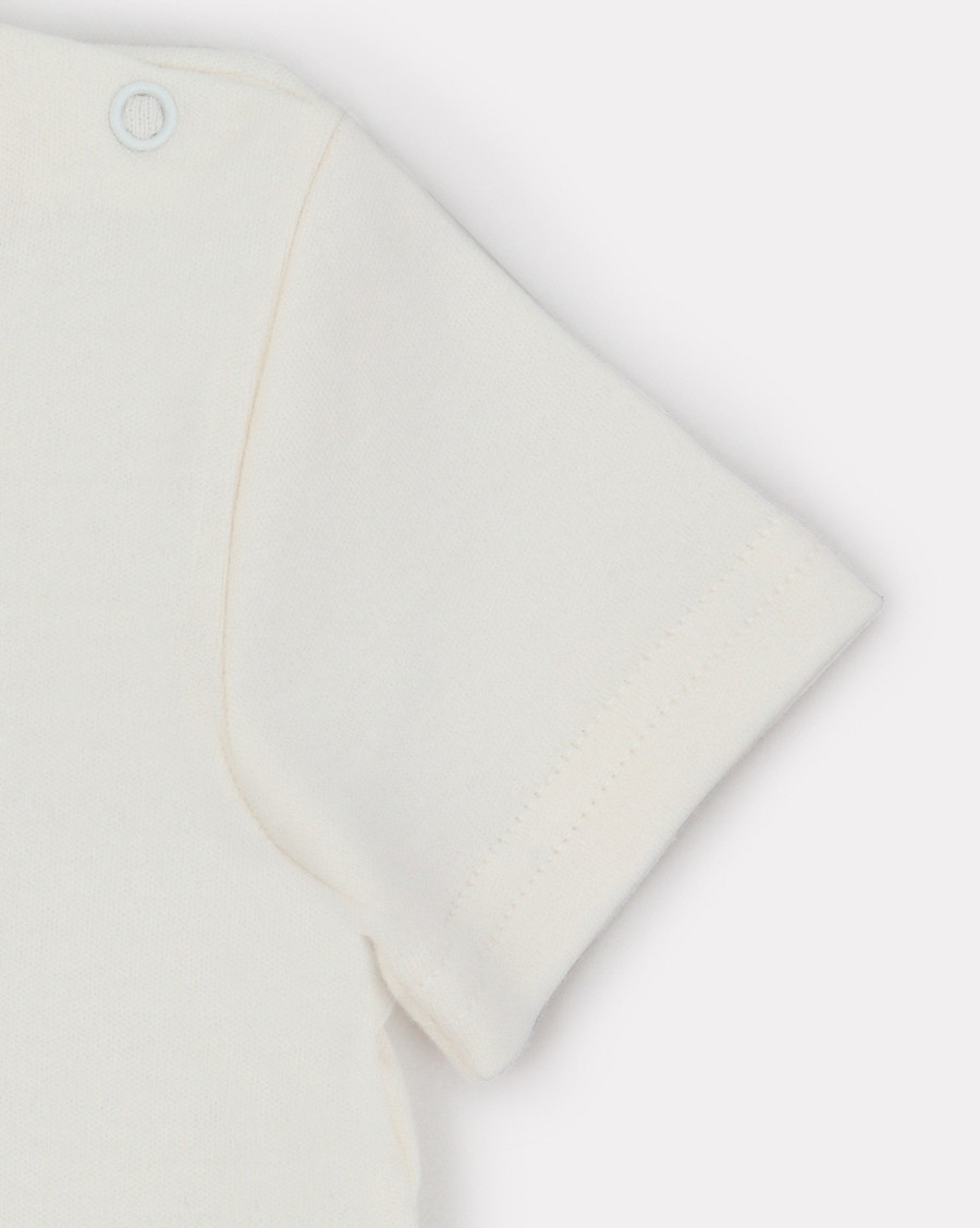 Для отпуска или теплых летних дней крохе обязательно пригодится футболочка. Очаровательную модель с кнопочками рядом с горловиной удобно как снимать, так и надевать.