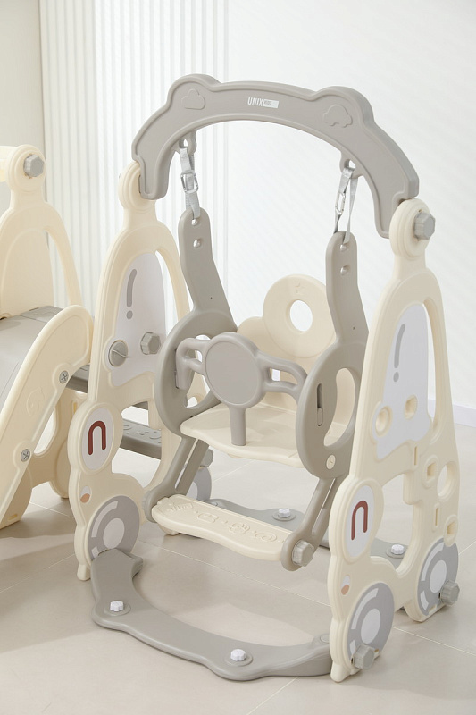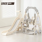 Как и все манежи Unix Kids, горка с качелями изготовлена из пищевого пластика 4-го класса — согласно классификации ГОСТ, гипоаллергенного и абсолютно безвредного даже для самых маленьких пользователей. Этот материал не боится UV-лучей, можно использовать на улице.