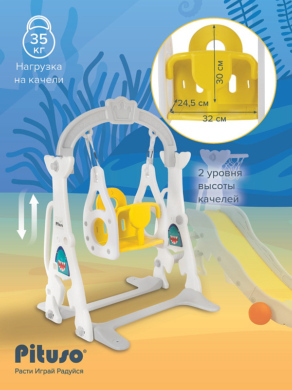 Горка-Комплекс Pituso Shark (горка,качели,баскет.кольцо) White/Белый