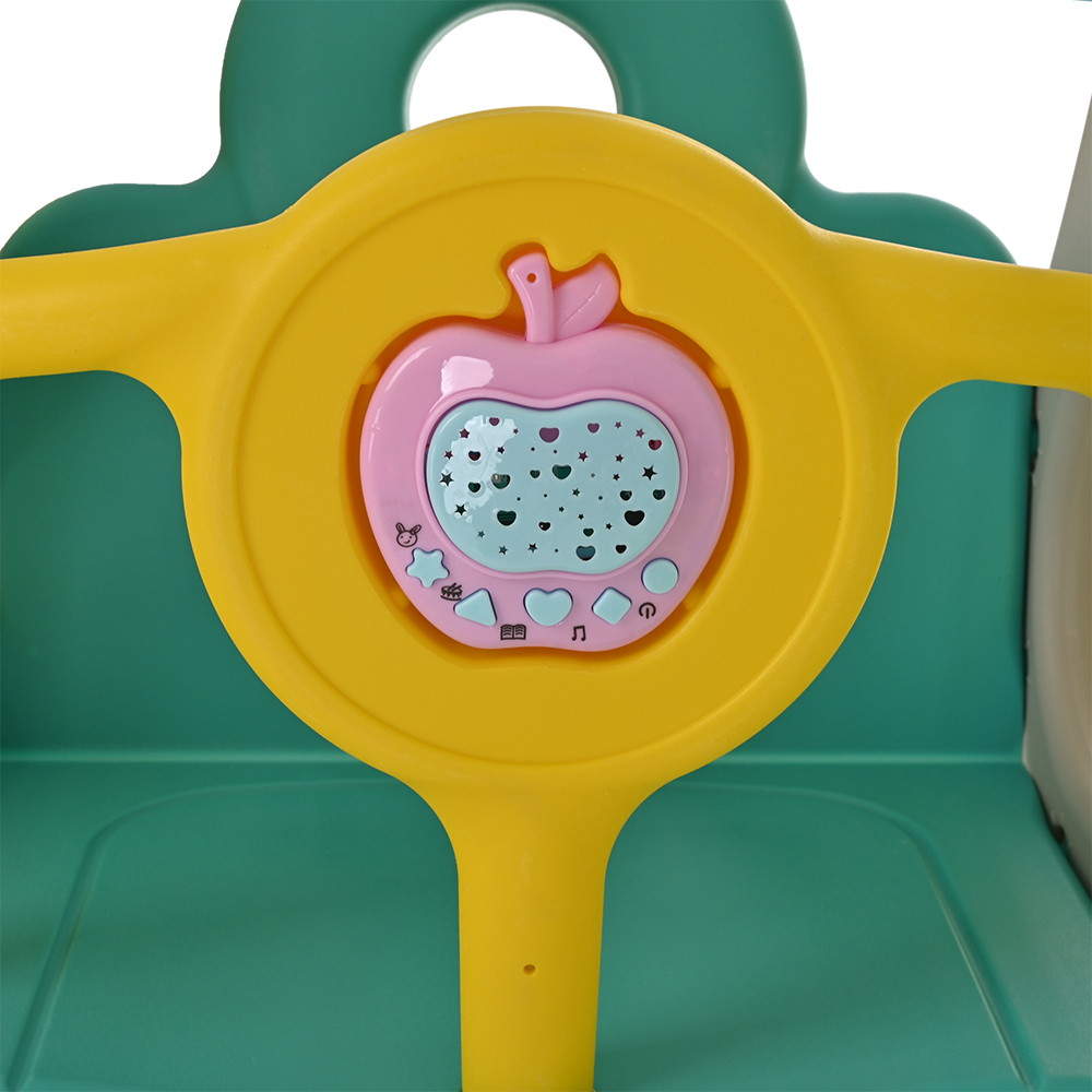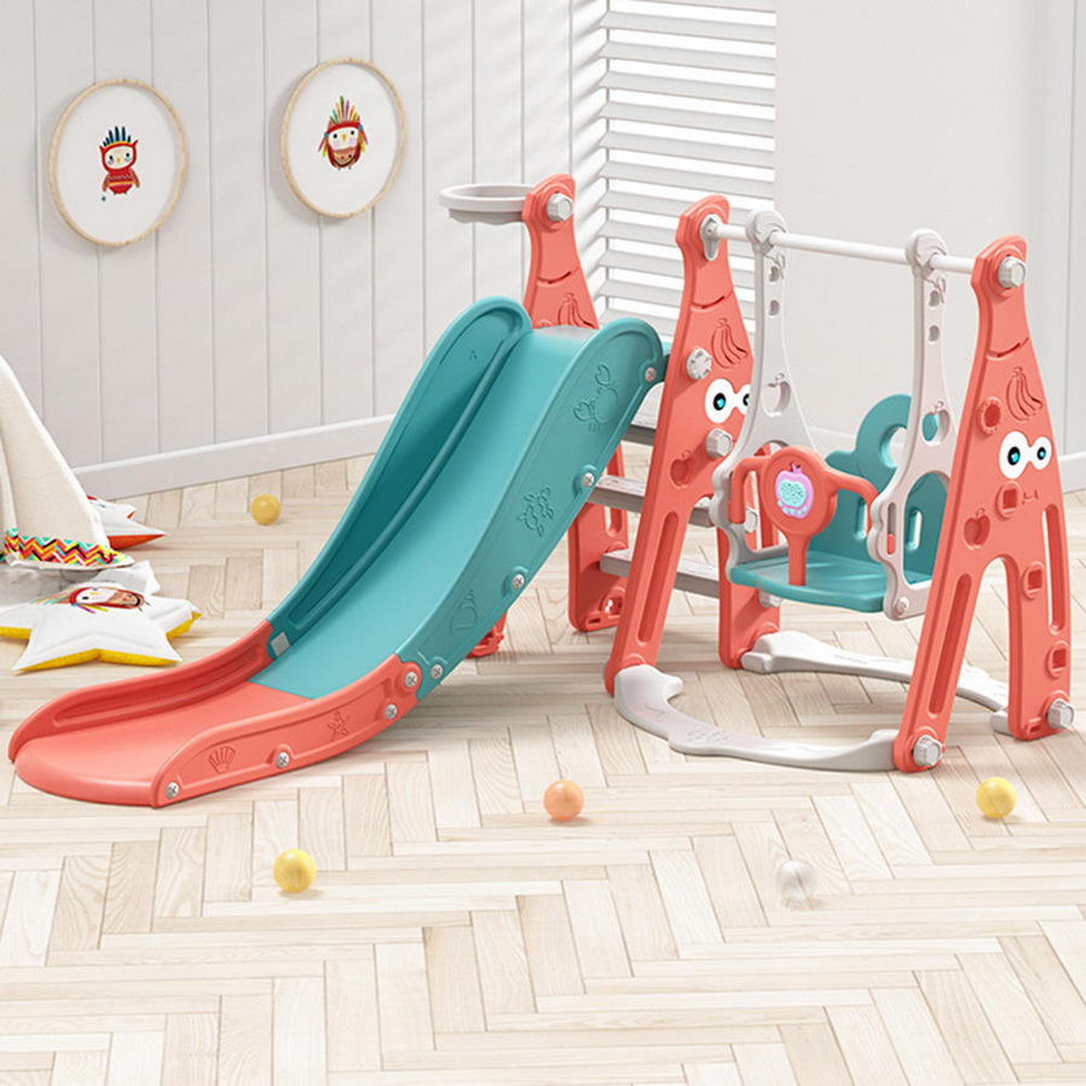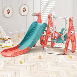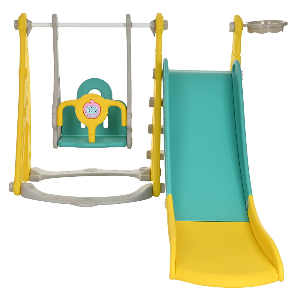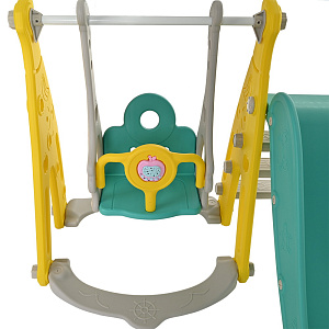 Комплектация: пластиковая горка, качели, кольцо баскетбольное (1 шт.)., муз.элемент