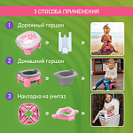 - сочетает в себе функции трех аксессуаров: обычного горшка, дорожного горшка и адаптера для унитаза