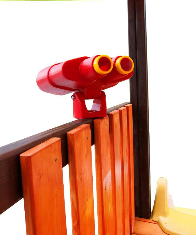 В набореигровой домик, столик, лавочка - 2 шт, лестница, скат, ручка пластиковая - 2 шт, П-опция, качели "Лодочка", качели "Малыш", канат с зацепами, штурвал "Шторм", бинокль "Капитан"
