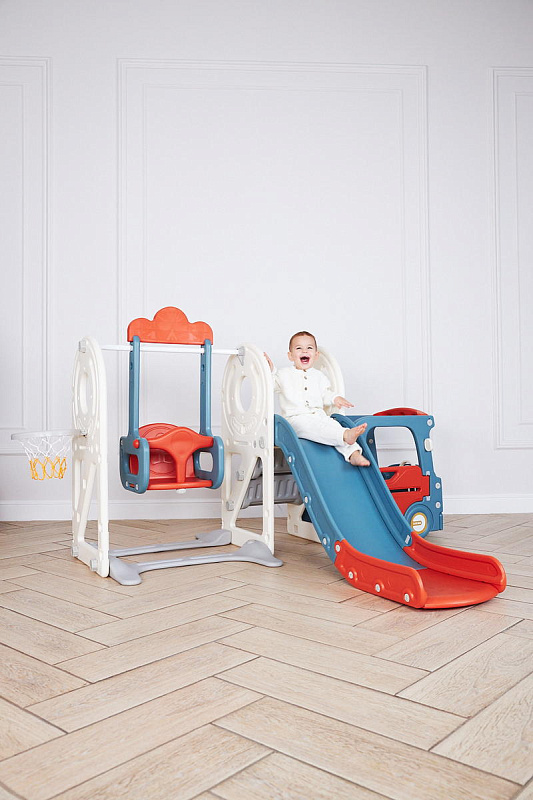 Мы уделяем внимание каждой детали, поэтому все элементы пластикового комплекса имеют закругленную форму во избежание травм. Прочный пластик не боится UV лучей и не выгорает на солнце, поэтому вы смело можете использовать комплекс с горкой не только дома, но и на улице! Детский игровой комплекс состоит из удобной горки, машинки и баскетбольного кольца, в некоторых моделях поставляется качель.