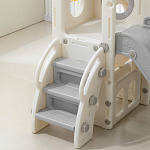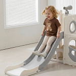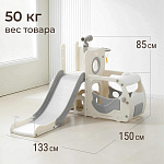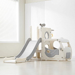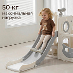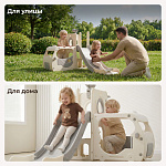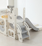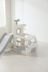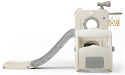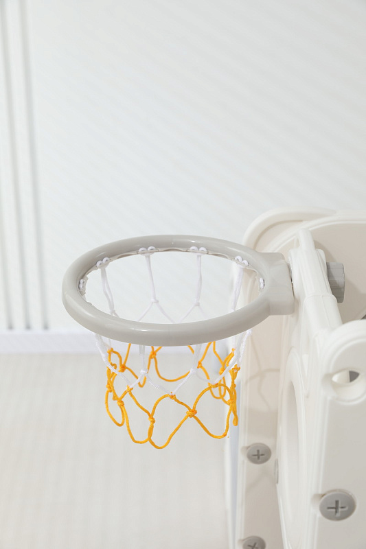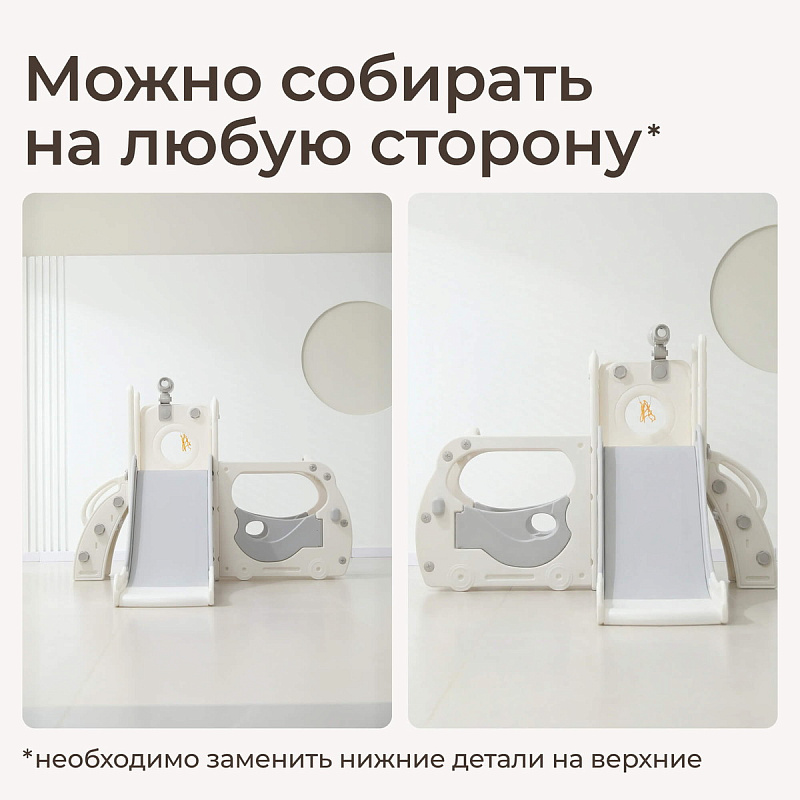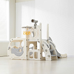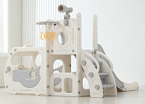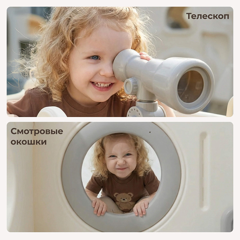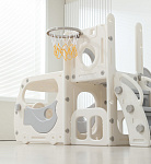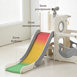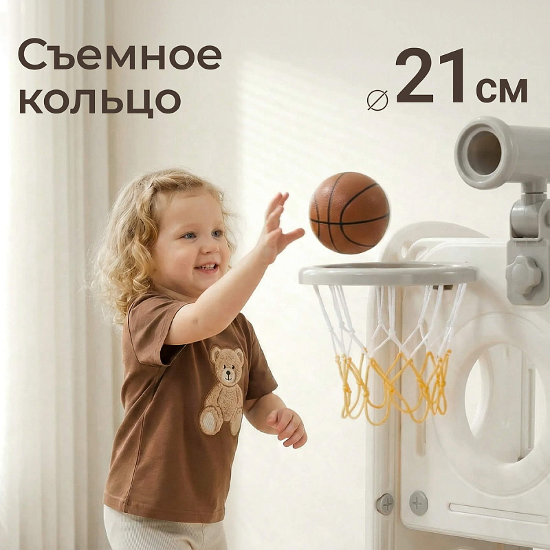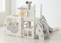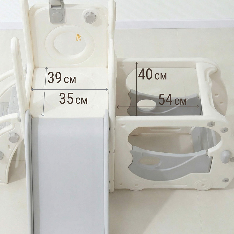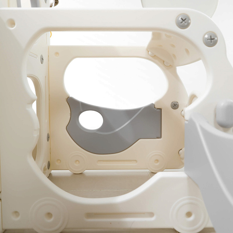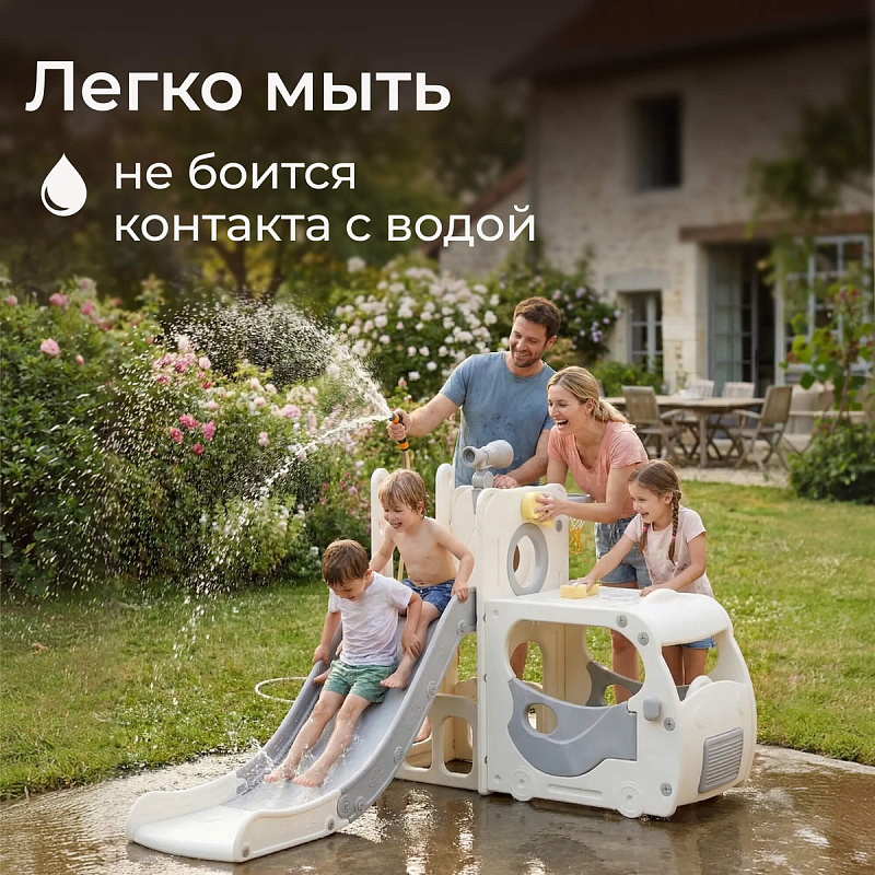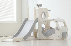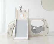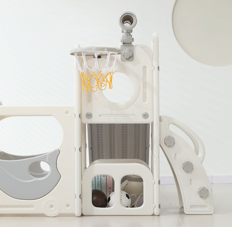 Спортивный игровой комплекс включает увлекательные элементы: пластиковую горку с гладким покрытием для комфортного спуска, машину с рулем, баскетбольное кольцо, которое способствует тренировке меткости и координации движений и подзорную трубу, позволяющую детям фантазировать, представлять себя исследователями, открывающими новые горизонты и приключения. Все детали домашней горки для катания и машинки изготовлены с закругленными краями, исключающими риск повреждений.