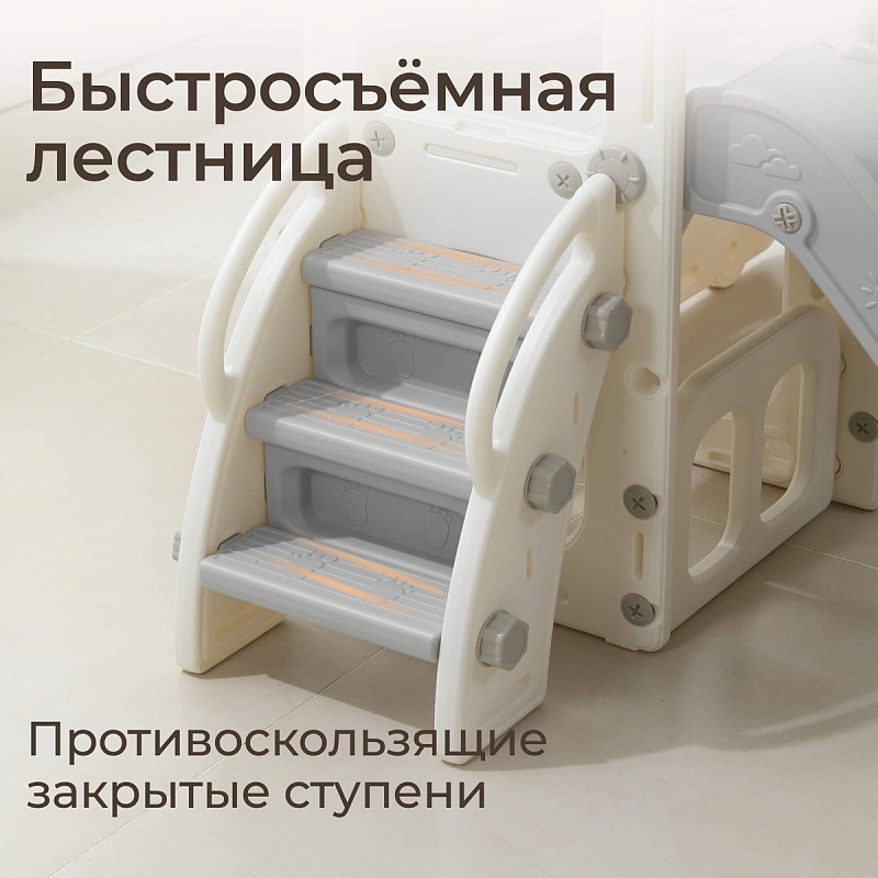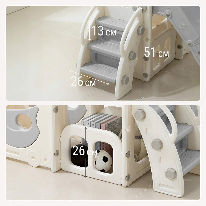 Простота сборки и компактные габариты позволяют установить игровую площадку в любом удобном месте: в квартире, дворе частного дома или на даче. Материал легко моется и очищается, сохраняя привлекательный внешний вид долгие годы.