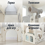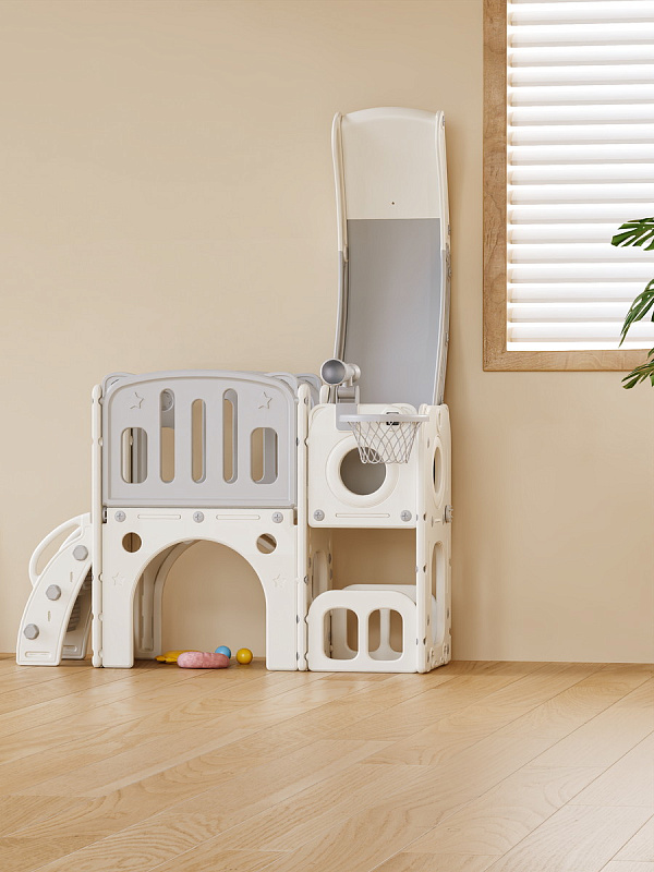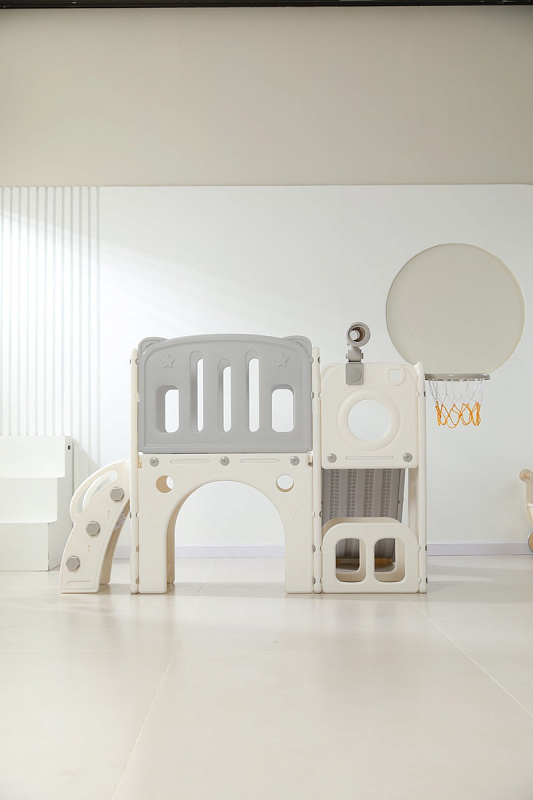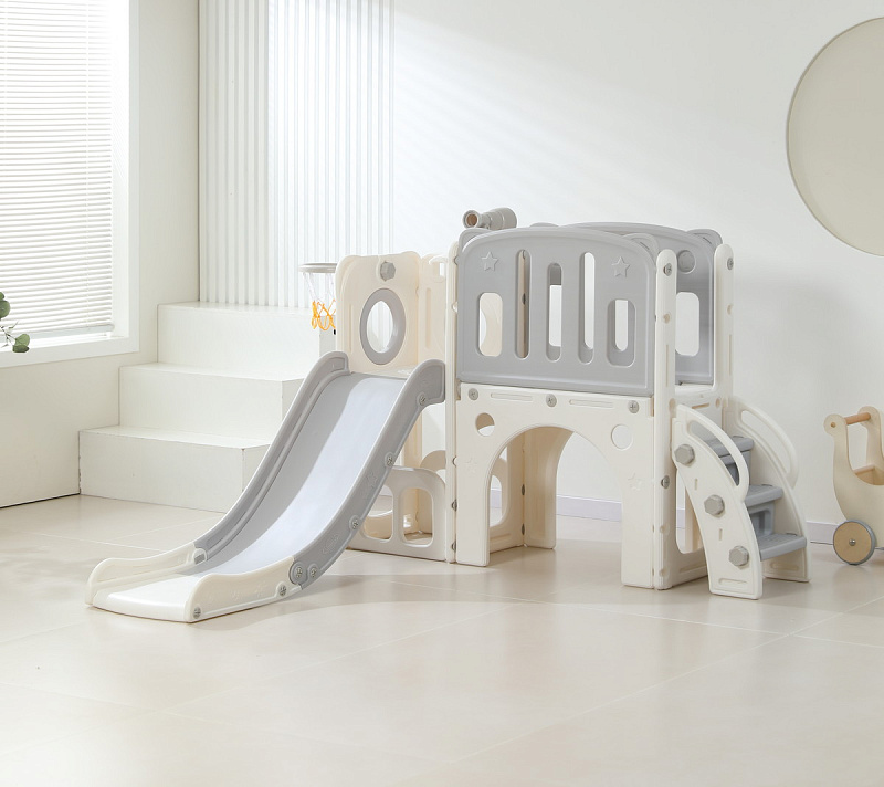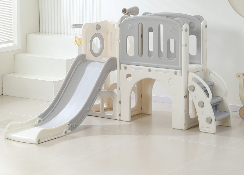 Конструктивные особенности игрового центра для малышей с пластиковой горкой предусматривают модульность и универсальность. Это заключается в его способности адаптироваться к различным условиям эксплуатации: продукт одинаково успешно применяется как внутри помещений, так и на открытых площадках: на улице и даче, предоставляя широкие возможности для организации активной деятельности и развития физических способностей ребёнка.