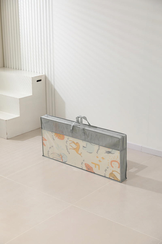 Это больше, чем просто коврик для малышей на пол — это целый мир увлекательных приключений, спрятанный внутри удобного складного изделия. Дизайн разработан специально для маленьких исследователей: привлекательные узоры и формы, способствующие развитию воображения и творческих способностей. Двусторонний коврик в детскую комнату позволяет малышу изучать две стороны, играя с удовольствием на обеих поверхностях. Такие качества делают его идеальным вариантом как полноценного покрытия пола в детской комнате, так и мобильным аксессуаром для прогулок на свежем воздухе, фотосессий или занятий вне дома.