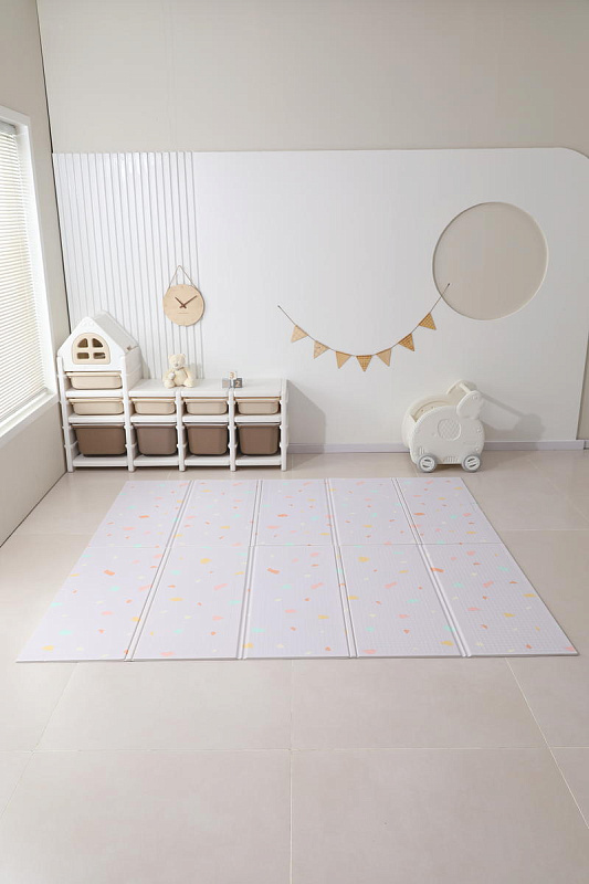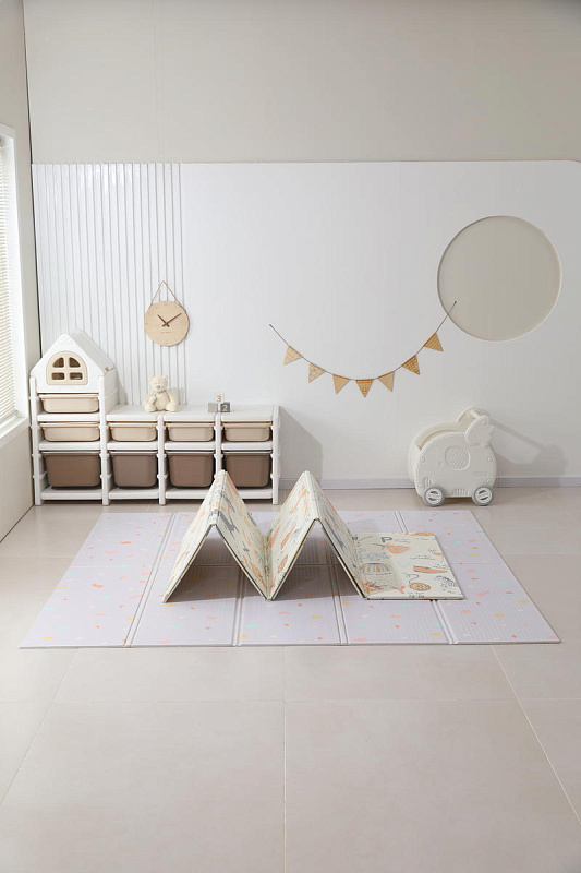 Это больше, чем просто коврик для малышей на пол — это целый мир увлекательных приключений, спрятанный внутри удобного складного изделия. Дизайн разработан специально для маленьких исследователей: привлекательные узоры и формы, способствующие развитию воображения и творческих способностей. Двусторонний коврик в детскую комнату позволяет малышу изучать две стороны, играя с удовольствием на обеих поверхностях. Такие качества делают его идеальным вариантом как полноценного покрытия пола в детской комнате, так и мобильным аксессуаром для прогулок на свежем воздухе, фотосессий или занятий вне дома.