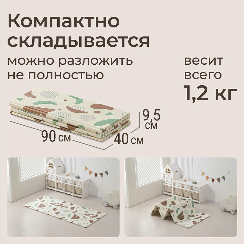Это больше, чем просто коврик для малышей на пол — это целый мир увлекательных приключений, спрятанный внутри удобного складного изделия. Дизайн разработан специально для маленьких исследователей: привлекательные узоры и формы, способствующие развитию воображения и творческих способностей. Двусторонний коврик в детскую комнату позволяет малышу изучать формы и рисунки с одной стороны или играя с удовольствием на обеих поверхностях. Такие качества делают его идеальным вариантом как полноценного покрытия пола в детской комнате, так и мобильным аксессуаром для прогулок на свежем воздухе, фотосессий или занятий вне дома.