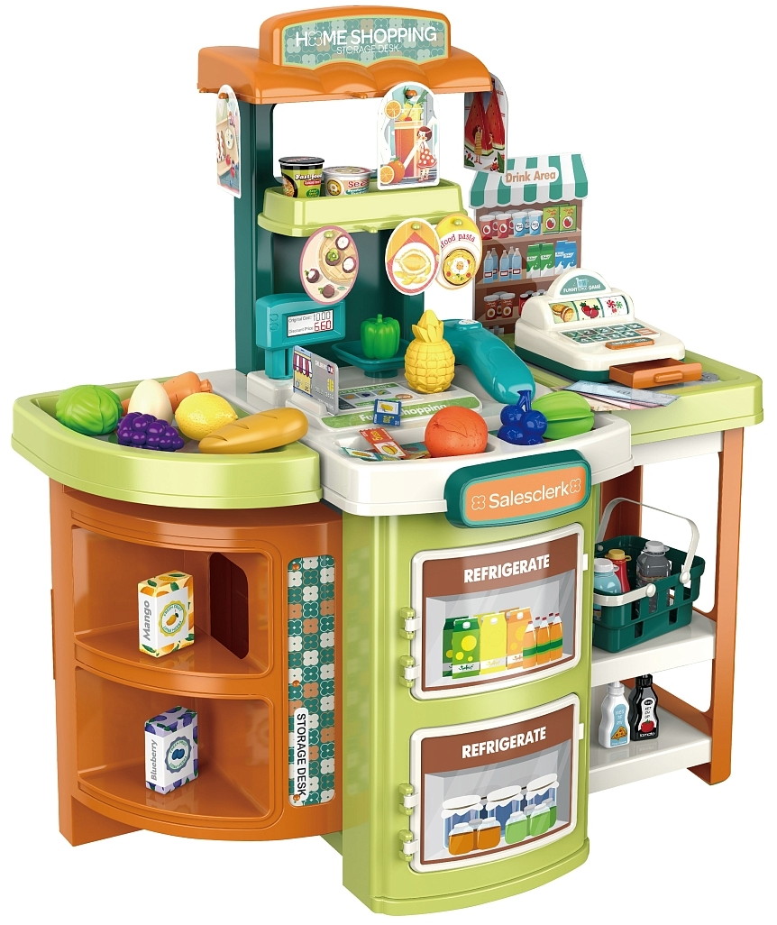 Игровой набор имитирует профессиональный, современный супермаркет с кассой и, безусловно, будет хорошим подарком для ребенка.