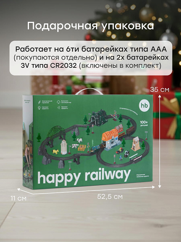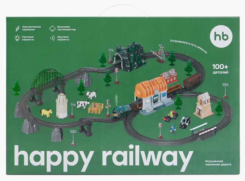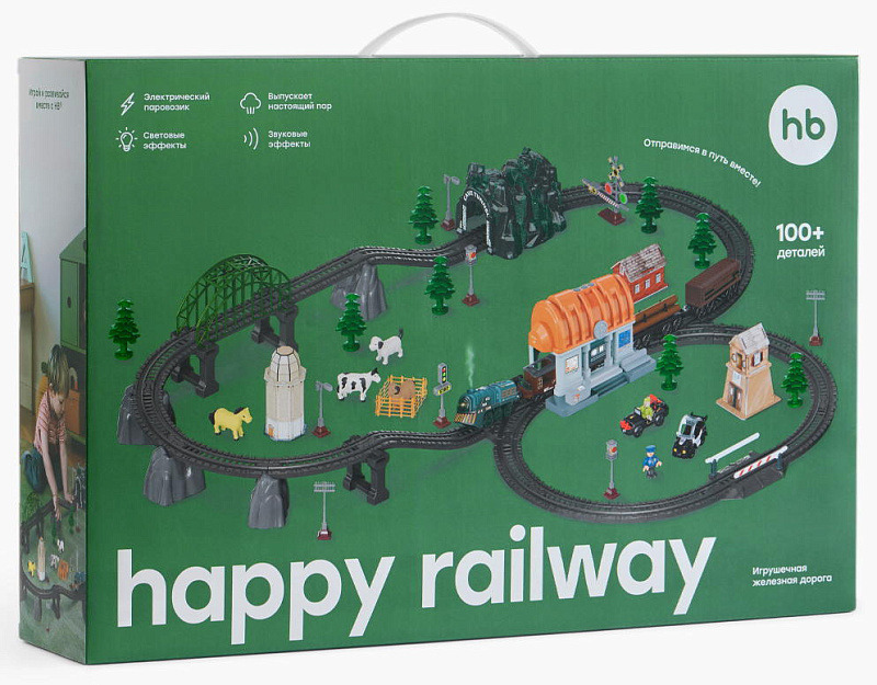 Железная дорога HAPPY RAILWAY — это целый мир приключений для детей от 3 лет. Она развивает воображение, логику и мелкую моторику благодаря реалистичному паровозу с эффектом пара и простой сборке, Игровой набор будет универсальным подарком на любой праздник как для мальчика, так и для девочки.