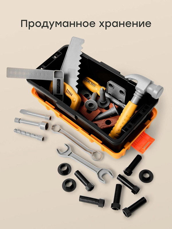 Набор инструментов детский от бренда Happy Baby "Happy Toolkit" - идеальный подарок для мальчика, который с удовольствием откроет для себя мир творчества и веселья. Этот набор строителя создан с реалистичным дизайном, который не только привлекает внимание, но и помогает освоить первые навыки работы с инструментами. Игры с таким набором развивают логику, улучшают координацию движений и стимулируют фантазию, превращая простое времяпрепровождение в полезное обучение. Увлекательные игры с игрушечными инструментами способствуют развитию образного мышления и самостоятельности. Такой игровой набор станет отличным выбором для детей, ведь он не просто развлекает, а развивает необходимые навыки и уверенность в своих силах с ранних лет. Качество каждого элемента - инструменты детские выполнены из безопасных материалов, которые выдержат активные игры и будут радовать вашего малыша долгое время. Набор инструментов станет не просто игрушкой, а первым помощником в развитии важных навыков. Развиваясь играючи, ваш ребенок получит настоящее удовольствие от игрового процесса, о также обретет важные умения!
