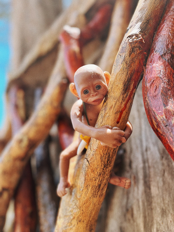 В волшебных джунглях поселилась очаровательная обезьянка. Её любопытные глазки блестят от предвкушения новых открытий, а маленькие ручки так и тянутся потрогать всё вокруг. Этот милый исследователь настолько похож на настоящего детёныша, что кажется, будто он только что спустился с самых высоких ветвей тропического леса. Настолько мягкая и нежная, что её хочется гладить снова и снова.