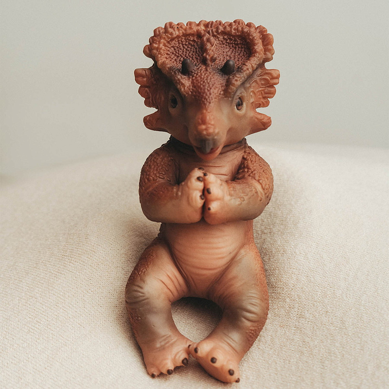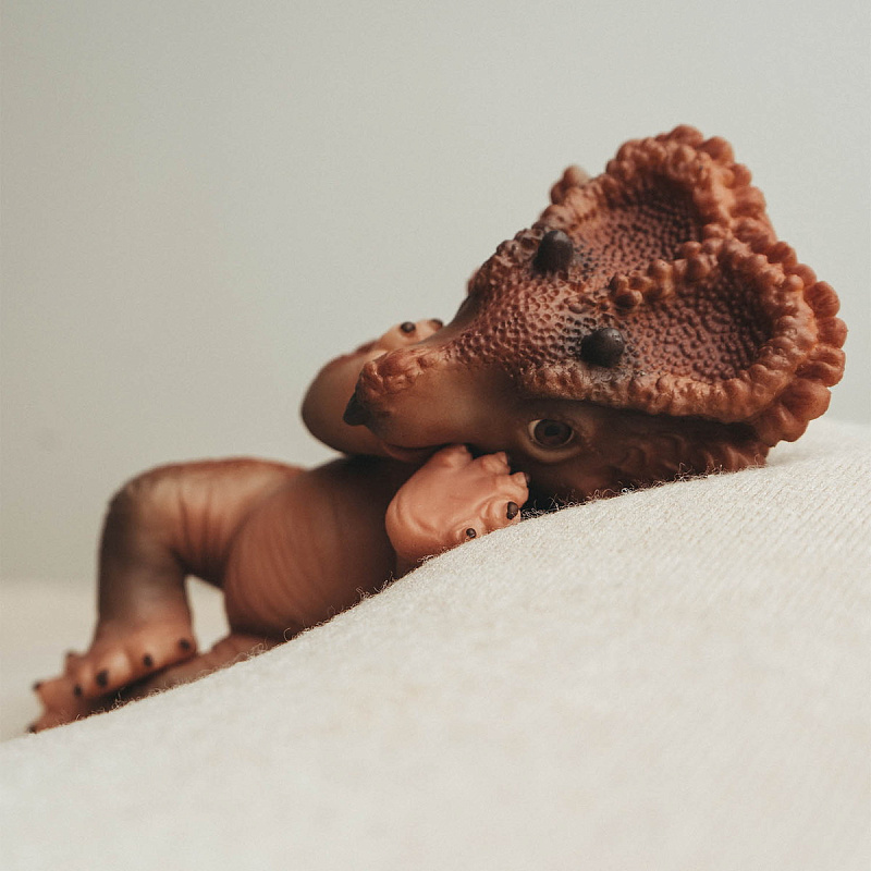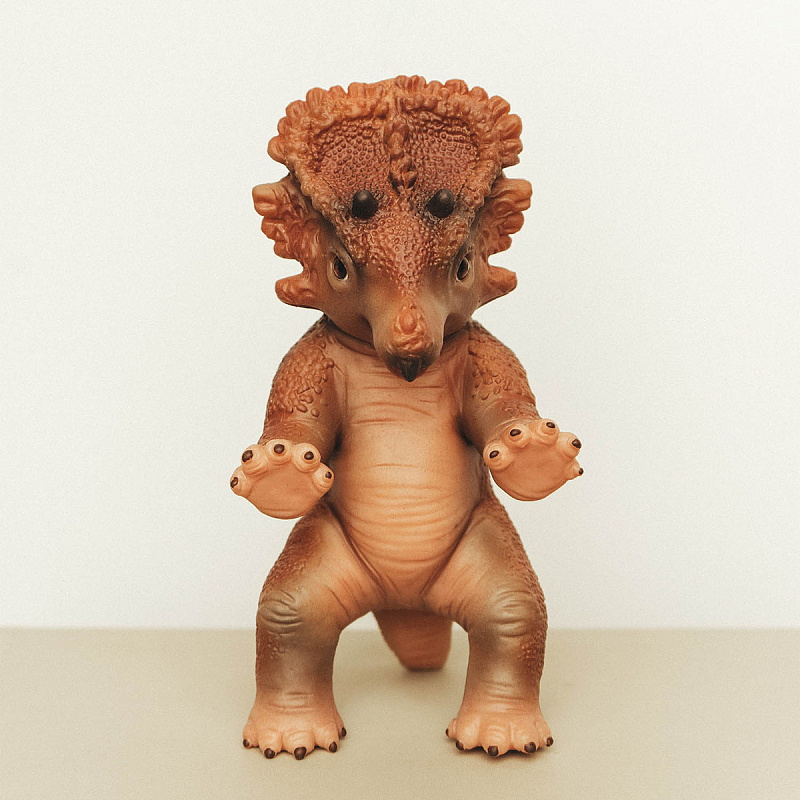 Мощный воротник, три рога и спокойный нрав — трицератопс выглядит благородно и уверенно. Это герой, который защищает «стадо» мягких игрушек и приглашает в игру о древних мирах.