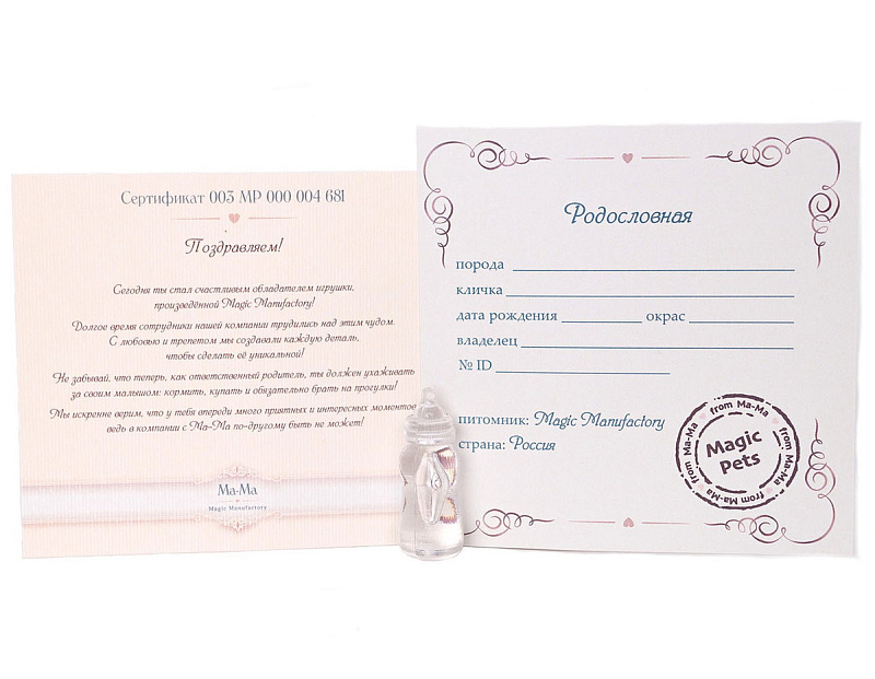 Комплектация: соска-кость, паспорт животного, карточки по уходу