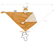 Милый дизайн с маленькой головкой, ушками и красочными этикетками для хватания. Различные возможности захвата для маленьких ручек и пальчиков, например, за голову и ушки. Ленты для крепления пустышки.