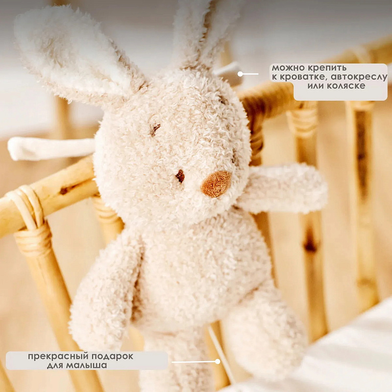 Мягкая музыкальная игрушка-кролик Nattou сочетает в себе мягкость и комфорт в одном игривом компаньоне. Благодаря длинным ушкам и очаровательной мордочке, она легко покоряет сердца малышей. Потяните за силиконовое кольцо, и встроенная музыкальная шкатулка воспроизведет успокаивающую мелодию «Ла-Ла-Лэй» — идеально для того, чтобы успокоить вашего малыша перед сном или если он капризничает. Благодаря удобным шнуркам, музыкальную игрушку можно легко прикрепить к кроватке, люльке, манежу, коляске или автокреслу. Очаровательный аксессуар и замечательный подарок для малыша.