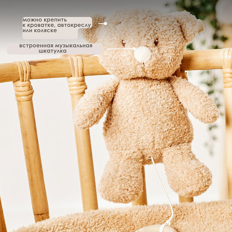Мягкая музыкальная игрушка-мишка Nattou сочетает в себе мягкость и комфорт в одном игривом компаньоне. Благодаря длинным ушкам и очаровательной мордочке, она легко покоряет сердца малышей. Потяните за силиконовое кольцо, и встроенная музыкальная шкатулка воспроизведет успокаивающую мелодию «Ла-Ла-Лэй» — идеально для того, чтобы успокоить вашего малыша перед сном или если он капризничает. Благодаря удобным шнуркам, музыкальную игрушку можно легко прикрепить к кроватке, люльке, манежу, коляске или автокреслу. Очаровательный аксессуар и замечательный подарок для малыша.