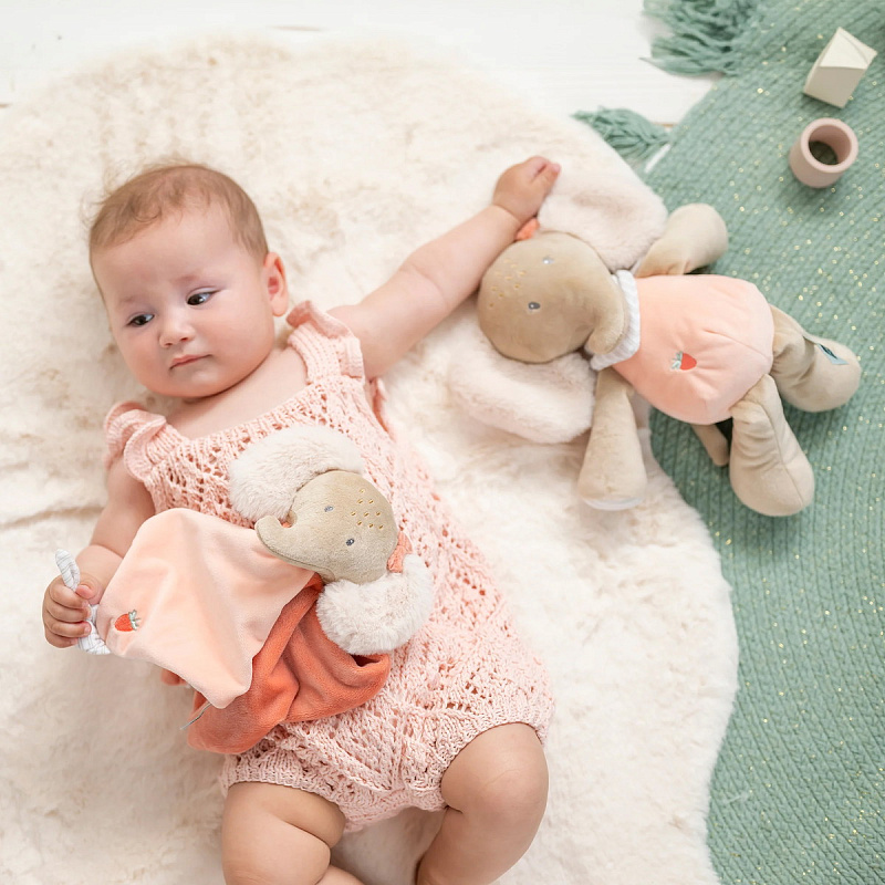 Самая милая плюшевая игрушка для вашего малыша — это слоник Оли! Благодаря своему пушистому мягкому меху плюшевый Оли невероятно приятен на ощупь и дарит вашему ребёнку ощущение комфорта и безопасности. Крепко держите плюшевую игрушку: за хобот, хвост, шарф или лапы. Это позволит вашему малышу оптимально развить осязание и моторику. Этот мягкий компаньон идеально подходит для объятий и исследований, что делает его отличным дополнением к игрушкам вашего малыша.