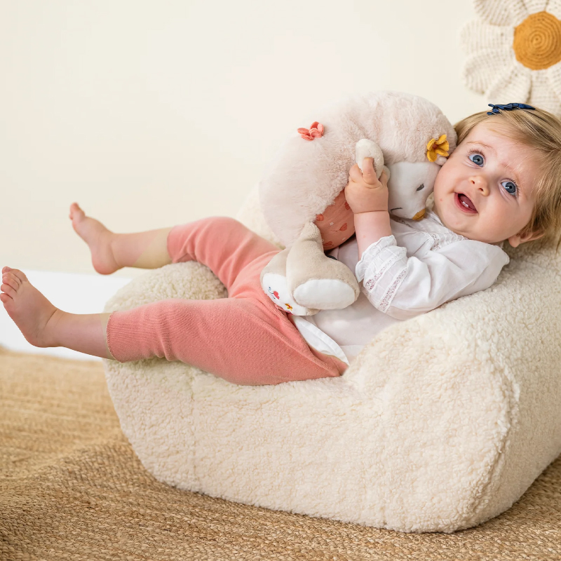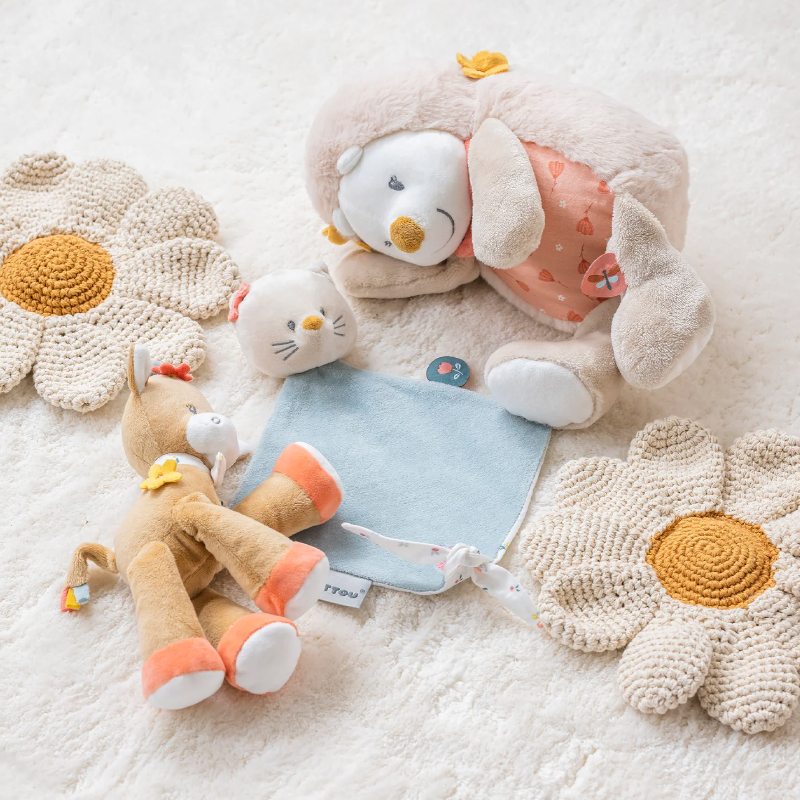 Красивая обнимашка из полиэстера и хлопка, которая приятна на ощупь и стимулирует осязание ребенка.
