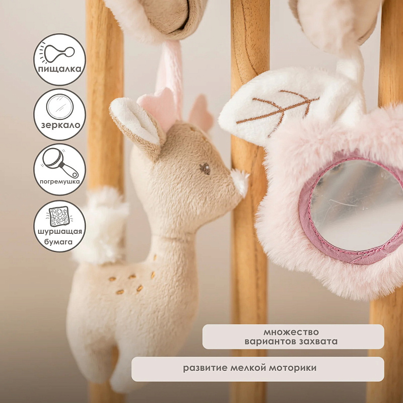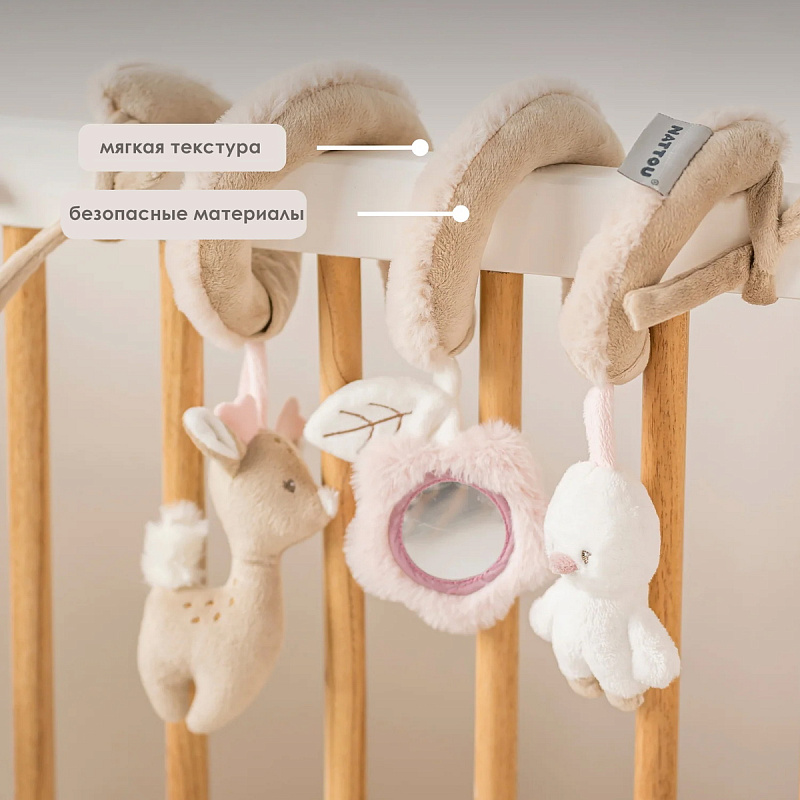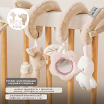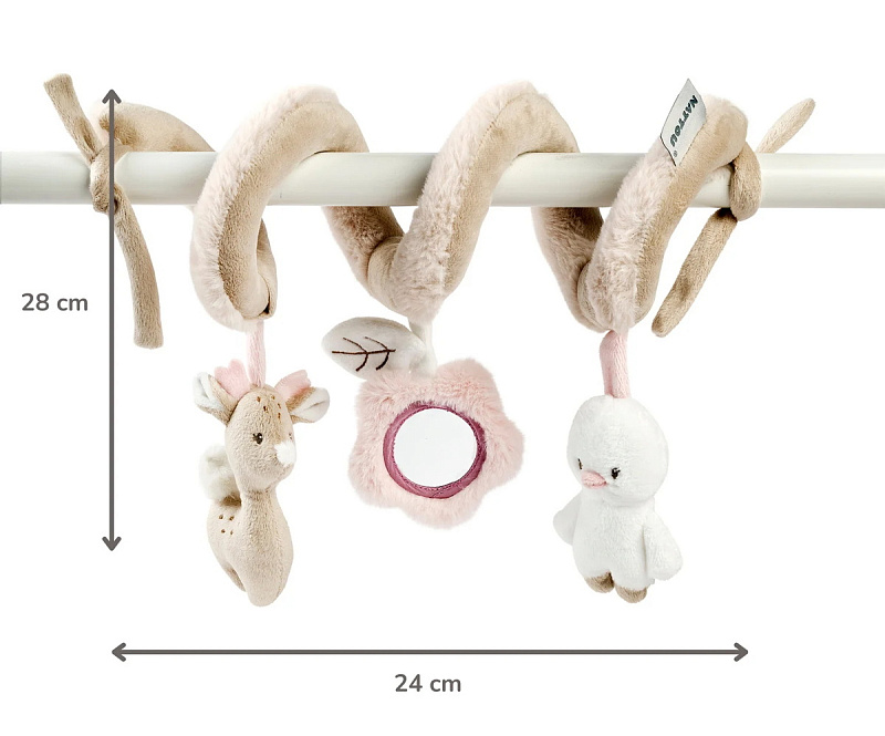 Эта мягкая игровая спираль с забавными элементами — идеальный компаньон для вашего малыша. Забавная погремушка и игрушка с пищалкой побуждают малыша хватать их и обеспечивают часы увлекательной игры. Игрушка стимулирует хватательный рефлекс и слуховое восприятие вашего малыша. Игровую спираль можно легко прикрепить к кроватке, манежу или автокреслу. Это веселое развлечение как дома, так и в дороге, а также оригинальный подарок.